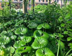When the Marciana district was under renovation by Napoleon and his viceroy Eugenio di Beauharnais, the Procuratie Nuove was converted into a royal residence. Although it was partially modified in later years, the design, by Royal architect Giovanni Antonio Antolini (1753-1841), featured a garden overlooking the San Marco Basin. Over a drawbridge crossing the Procuratie Nuove canal, the gardens were added on to the property, featuring a series of elements inspired by traditional Italian-style gardens. After the Austrians retook Venice, architect Lorenzo Santi (1783-1839) completed the gardens by adding a tree-lined avenue overlooking the Basin, geometric Italian-style parterres, and two English-style groves. Between 1815 and 1817, he added a greenhouse on Zecca bridge and, to lend perspective to this new thoroughfare, crowned the view with an elegant neoclassical pavilion, the Cafehaus. In 1857, when Emperor Franz Joseph opened the avenue facing the Basin for public use, a long iron and cast iron pergola was added to provide a shady walk. After years of neglect, the “Venice Gardens Foundation” chaired by Adele Re Rebaudengo commissioned architect Paolo Pejrone to restore the Royal Gardens and oversee its botanical management. Its formal value and botanical complexity revived, the gardens reopened in December 2019. Exotic plants now grow alongside long-established evergreen shrubs, paying homage to the Serenissima’s heritage and taking into account its unique brackish environment. Groves of sophora shade hydrangeas and ligularia; more than five thousand agapanthus (and, in spring, daffodils and tulips) bloom in the parterres. Large terracotta pots house pomegranates, figs, medlars, bitter oranges and glossy viburnums; clerodendrons and osmanthus provide their scent in the garden’s borders, while various species of bamboo surround the large greenhouse. Birds have returned to nest in the gardens’ renewed harmony.