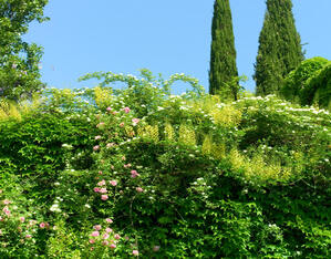 La casa in pietra grigia, risalente al VII secolo, era posta a cavallo del fiume Marta, emissario del Lago di Bolsena, per poter catturare le anguille per mezzo di grate prima di canne palustri e successivamente di ferro. Dopo svariati anni di abbandono, alla fine degli anni Settanta è stato installato un giardino fiorito, progettato e realizzato da Mirella Faggiani. Si accede da un piccolo cancello, che ricorda le grate per le anguille, e si è subito colpiti dalla ricchezza di alberi, arbusti e fiori che in ogni stagione attirano per l’armonia della composizione e dei colori. Elemento catalizzatore del giardino è il fiume, che passa sotto la casa ed è attraversato da un ponticello, dove l’acqua scorre ora pacata, ora gorgogliante. Accanto alla collezione di rose antiche, svettano alberi ricercati come Taxodium distichum, Quercus rubra, Liquidambar stryraciflua, Erythrina crista-galli, Lyriodendron tulipifera, ciliegi e meli da fiore. Un’area è riservata a un boschetto di betulle, viburni, camelie, magnolie, cornioli e agrifogli, tappezzato di ellebori, primule e dafne selvatiche, viole mammole. Ovunque sono le fioriture di bulbose, di erbacee annuali e perenni e non manca tutto il corredo floristico del bordo misto. Nella magia del suo giardino Mirella era prodiga di consigli, di talee, di semi, mentre il marito Massimo amava raccontare le tante vicende del lago e lo straordinario lungo percorso di riproduzione delle anguille. La Cannara è ora nelle mani del figlio Marco Valerio, che ha ereditato la loro passione, ha restaurato gli edifici e si prende cura del giardino.
